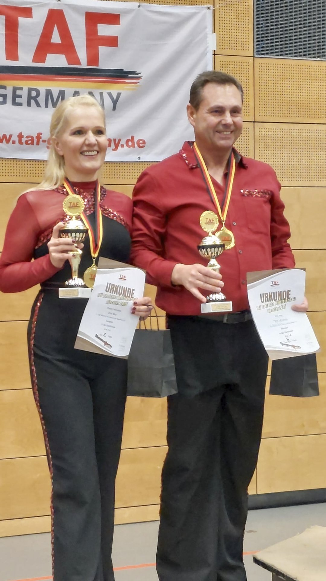 Petra und Ecki bei der Siegerehrung TAF Deutsche Meisterschaft Discofox 2025